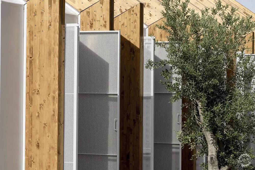 這是一個干燥的工業化木結構,能夠保證質量,對于環境的影響低,但是有著一定的效率、經濟效益,以及結構設計精準度。與此同時,這種體系便于運輸、調試、裝卸,為了滿足這些需求,結構、天花板、立面、技術樓層的綜合網絡和空調之間的協調必不可少。在建筑內部,項目的最后一層覆蓋了與展館中建筑部分相同的完成面。