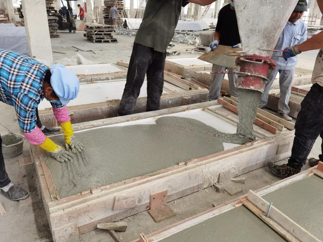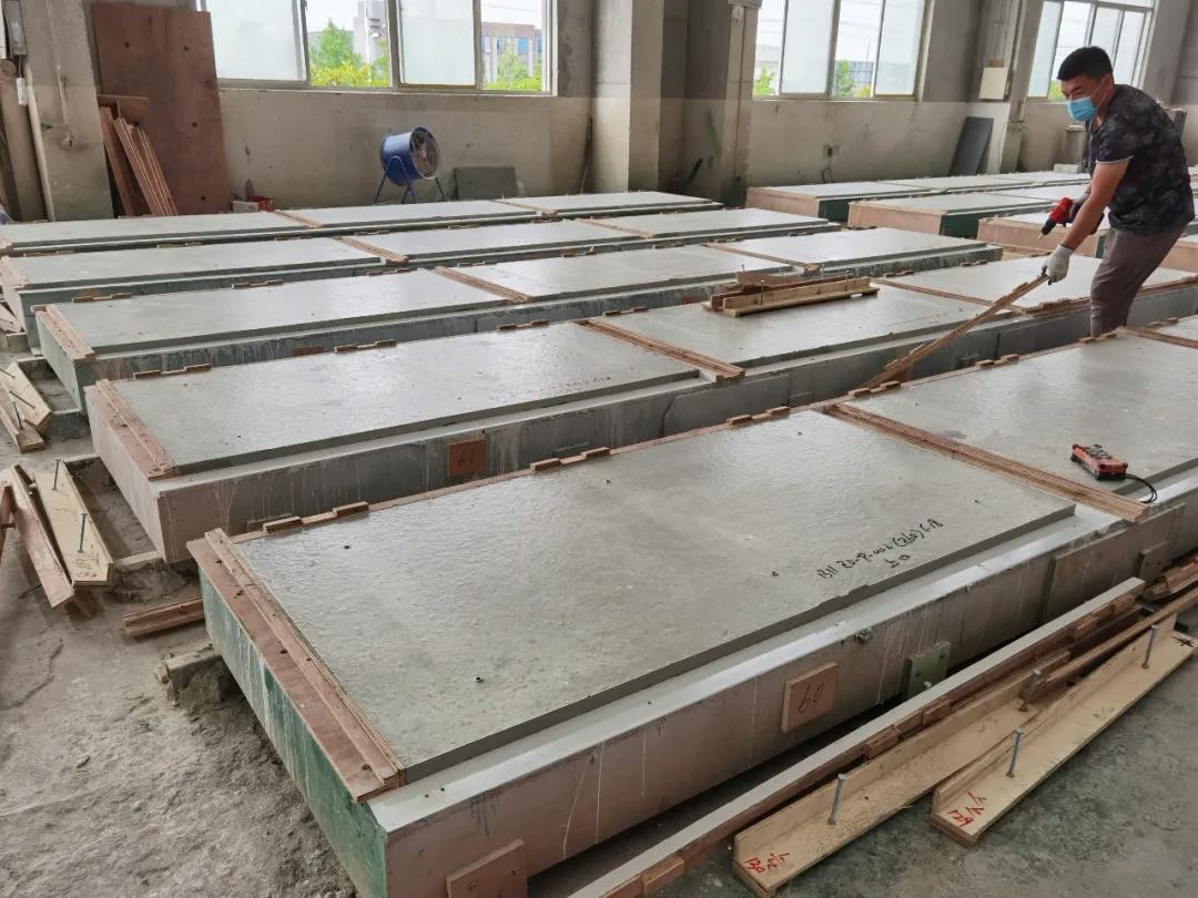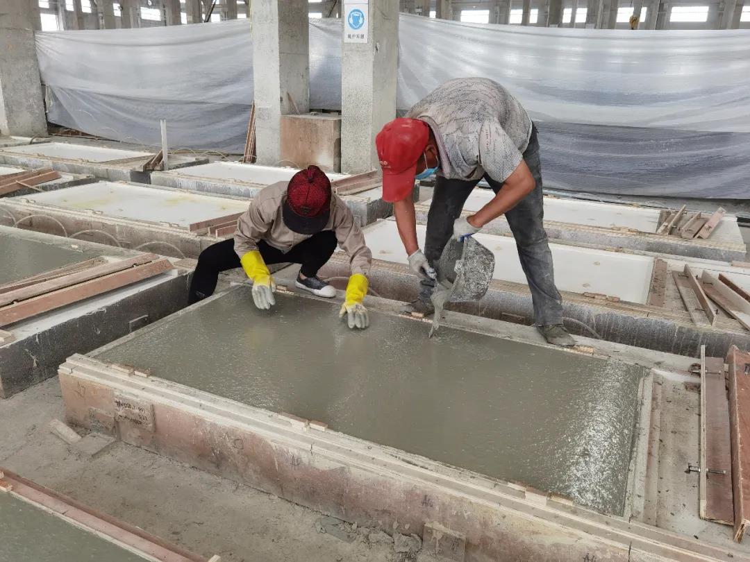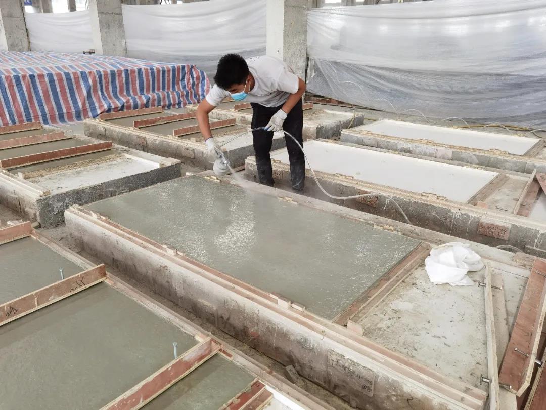 本篇選擇了一款最簡單的平面構(gòu)件——仿清水混凝土墻構(gòu)件,來展示生產(chǎn)過程。相片拍攝于2020年6月,倍立達(dá)滁州工廠,感謝倍立達(dá)新材料系統(tǒng)工程公司的參觀接待和講解。